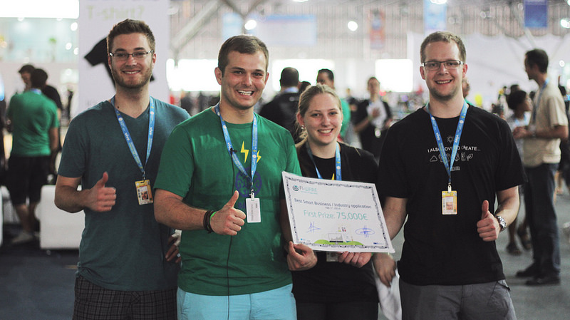 On the day of the award ceremony, we were filled with excitement. We spoke with FI-Ware members, had a couple of brief interviews and took our team photo. As we walked to the stage, we could feel the excitement growing. We had put a lot of work into developing this app and the whole concept including marketing and business model backing it up, and nothing at that moment could be more exciting that winning a prize that could help us take it to the next level. As our name wasn't called for the 2 runner up spots, the tension grew. We knew we had a great idea, and have been working hard on developing it for over a year. Was that along with our two presentations and the intial first round submitted proof of concept this week enough? FoodLoop popped up on the screen before the presenter said it. All of our eyes lit up and we screamed out in happiness and accomplishment. We walked up to the stage feeling very honored and proud of ourselves. Afterwards we thanked the Fi-Ware team and judges.