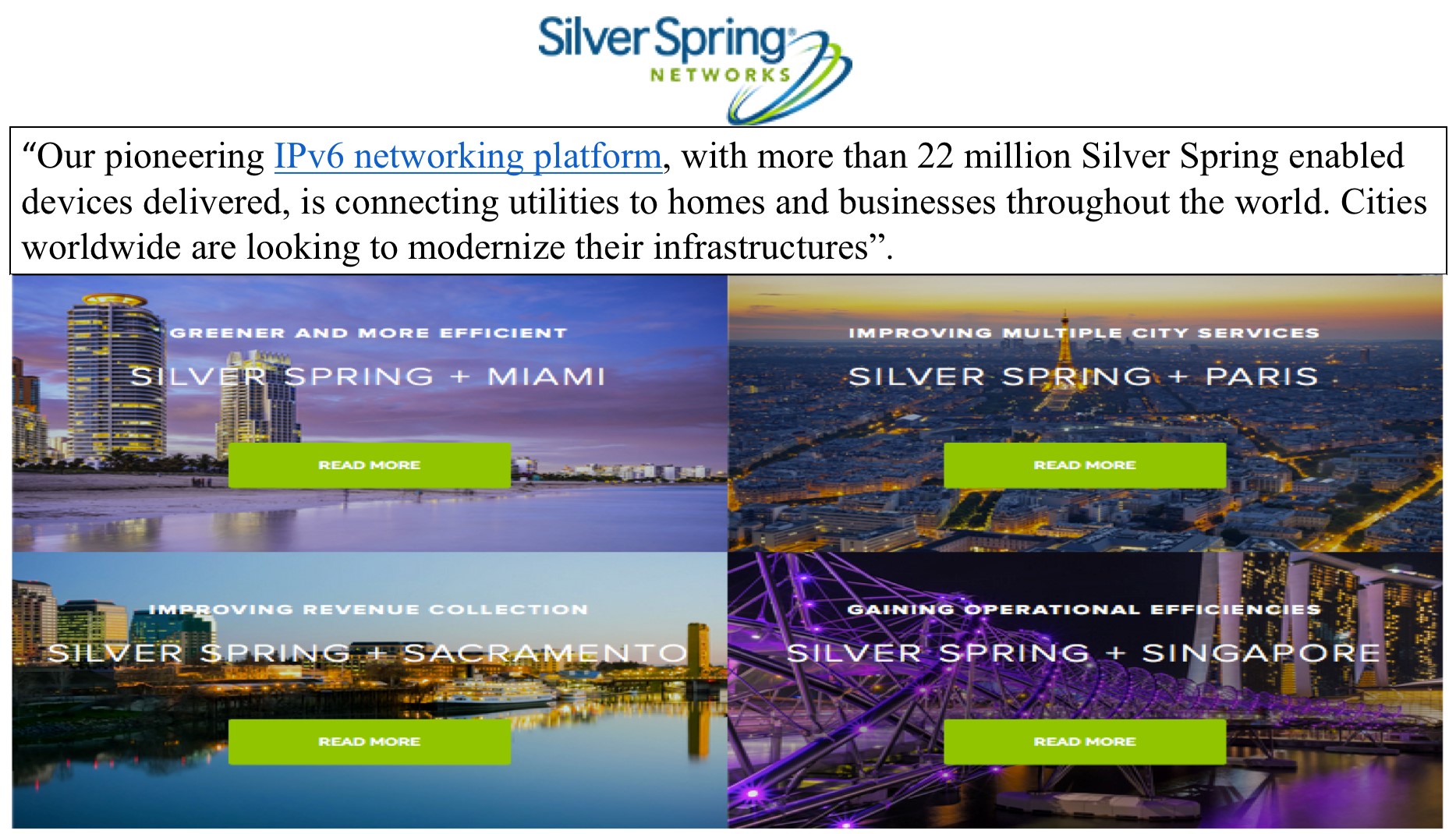 For instance, Silver Spring Networks (NYSE: SSNI) is enabling both IPv6 connectivity and platform solutions in the USA and other regions.